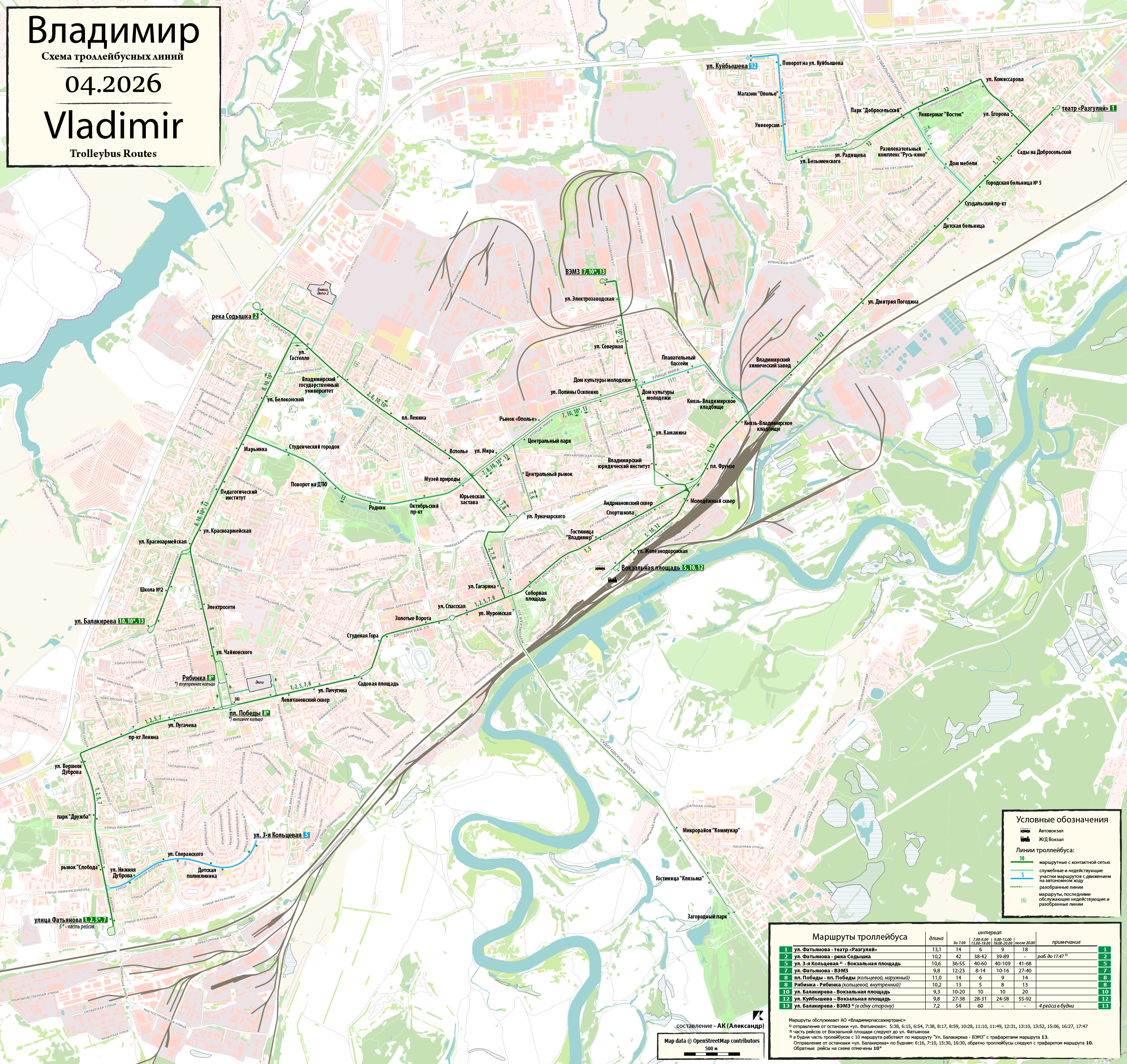 Схема маршрутов троллейбуса состоянию на 04.2026. — возобновлен маршрут 12, продленный с помощью автономного хода.